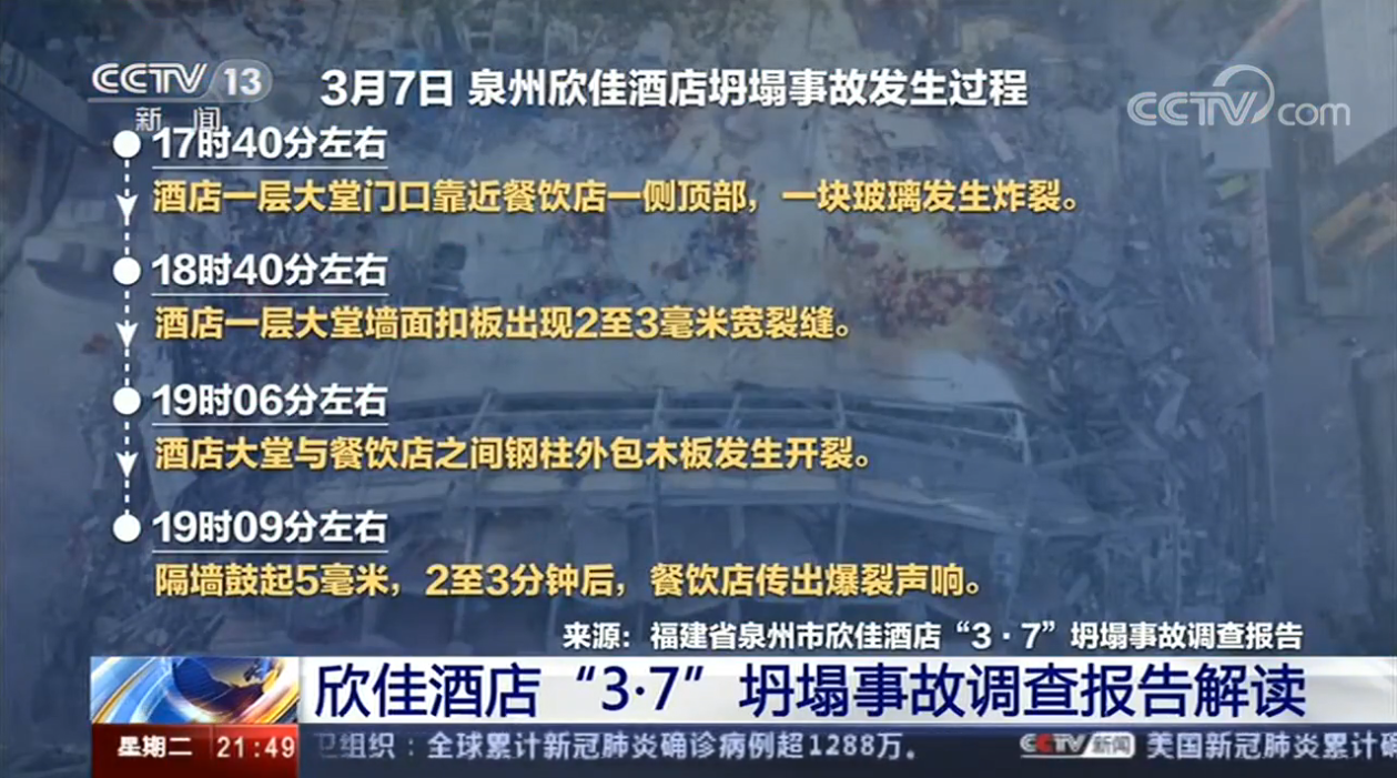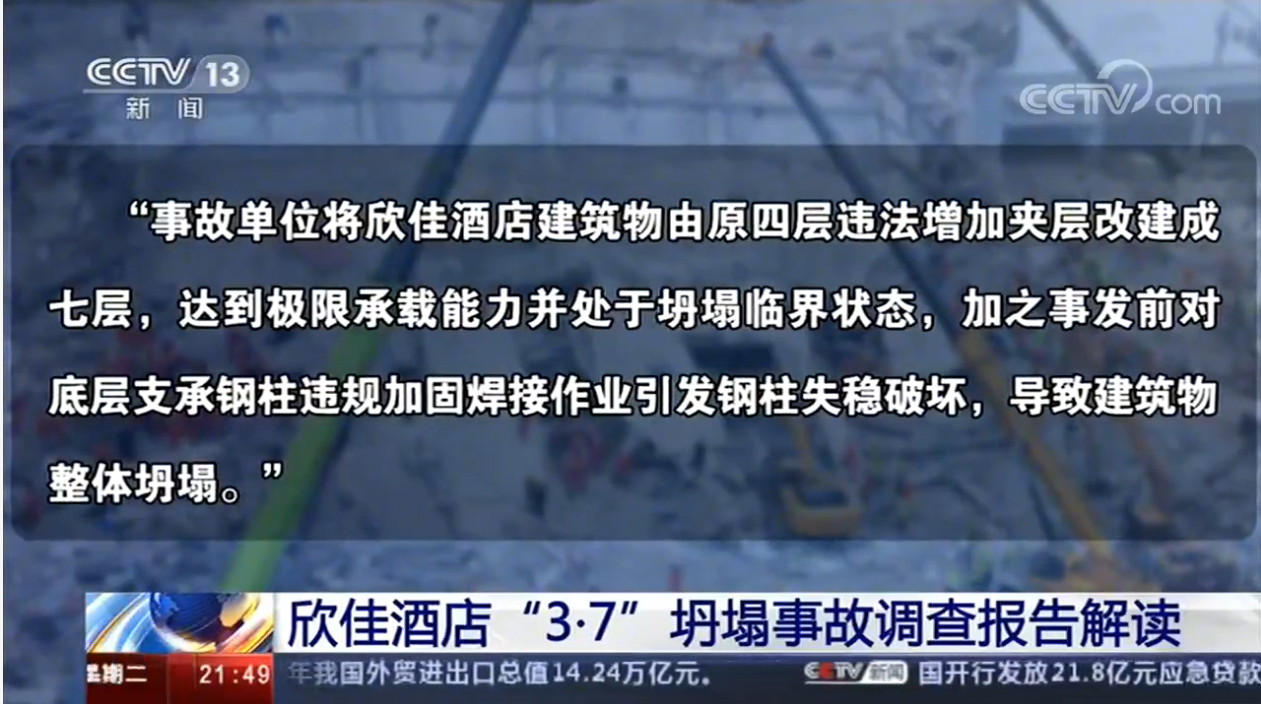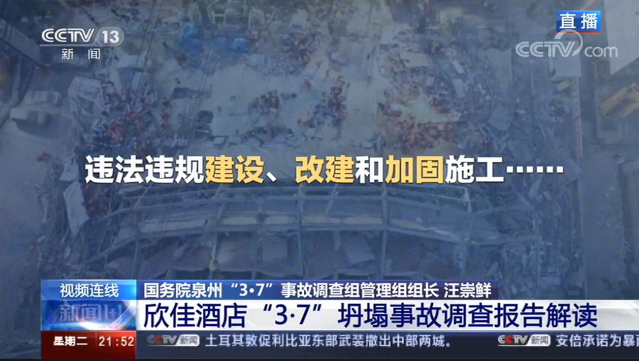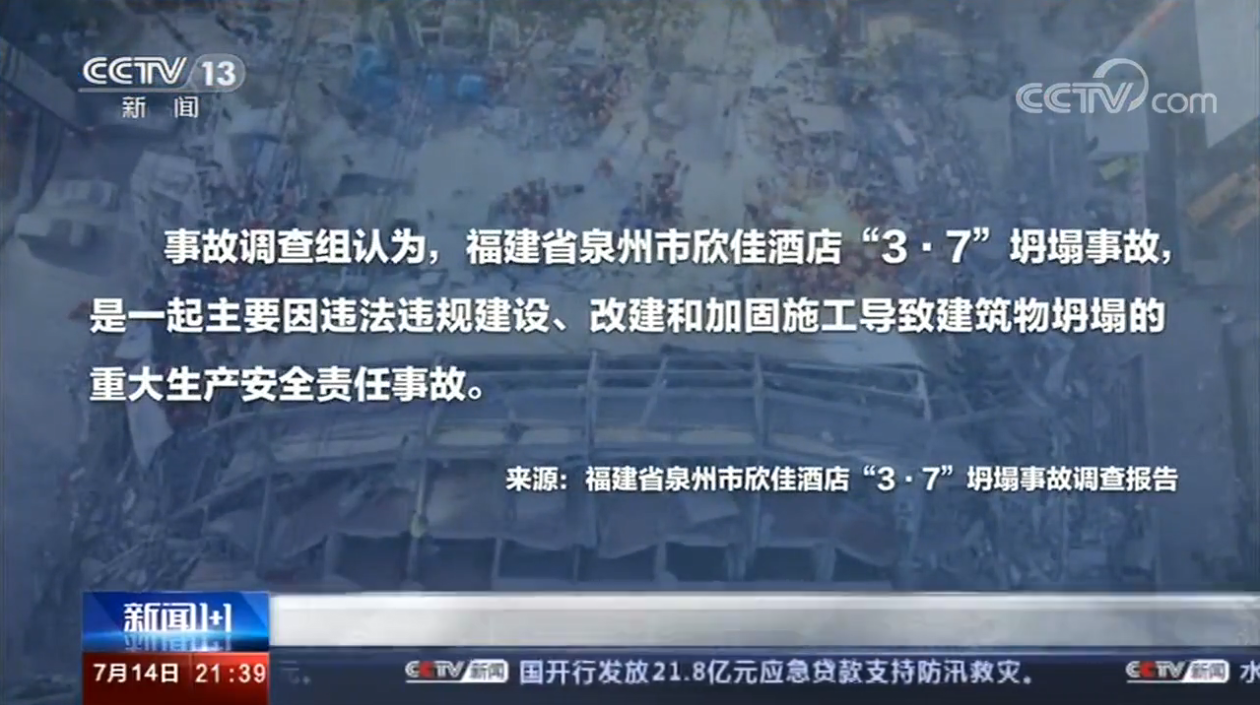 近日,福建省泉州市欣佳酒店“3·7”坍塌事故调查报告公布!国务院认定:福建省泉州市欣佳酒店“3·7”坍塌事故是一起主要因违法违规建设、改建和加固施工导致建筑物坍塌的重大生产安全责任事故。
