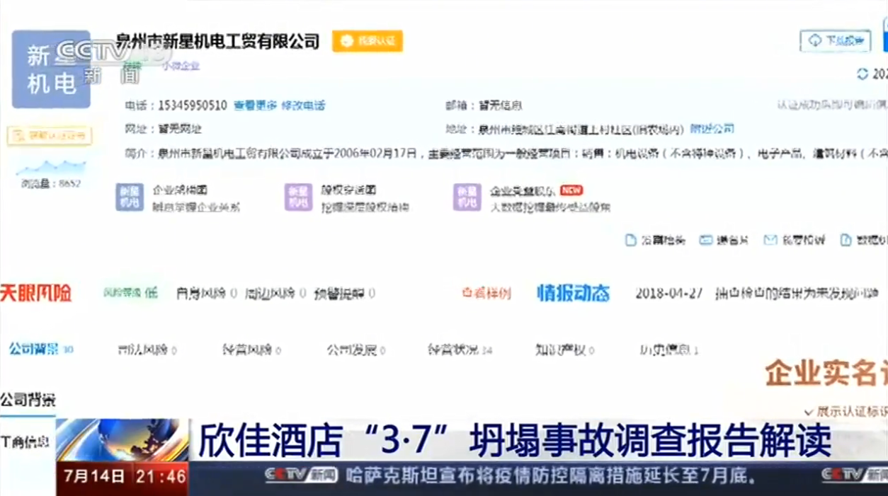 国务院事故调查组认定,泉州市新星机电工贸有限公司、欣佳酒店及其实际控制人杨金锵无视国家有关城乡规划、建设、安全生产以及行政许可等法律法规,违法违规建设施工,弄虚作假骗取行政许可,安全生产责任长期不落实。相关工程质量检测、建筑设计、消防检测、装饰设计等中介服务机构违规承接业务,出具虚假报告,制作虚假材料帮助事故企业通过行政审批。