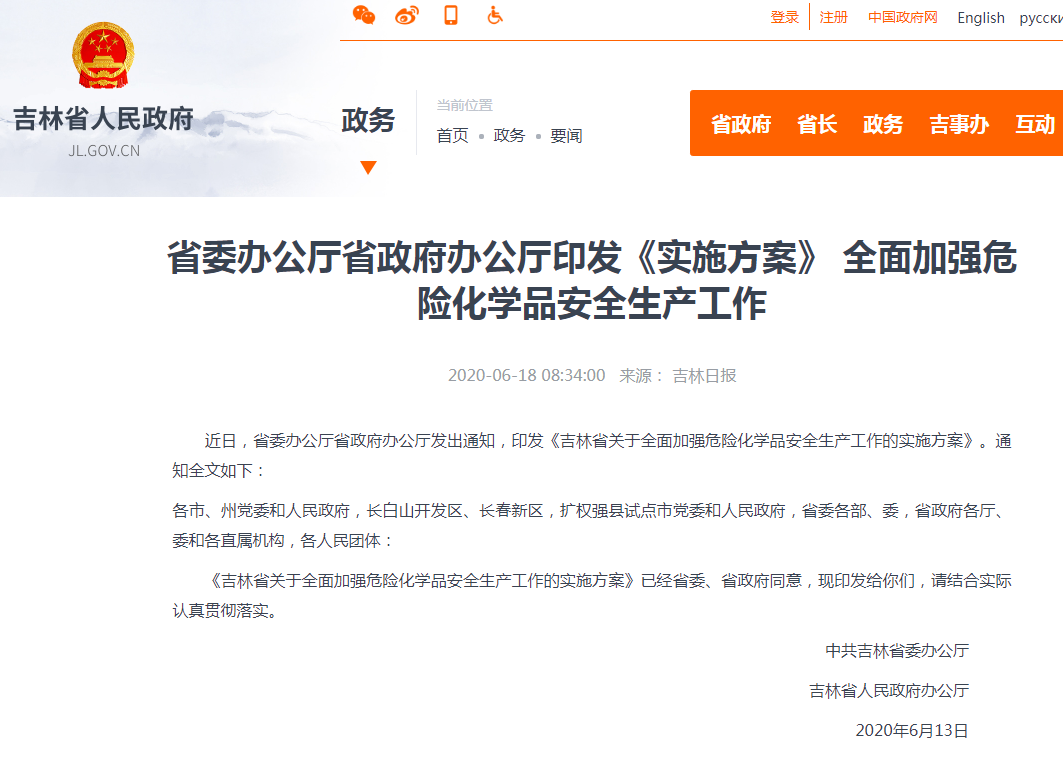吉林省关于全面加强危险化学品安全生产工作的实施方案