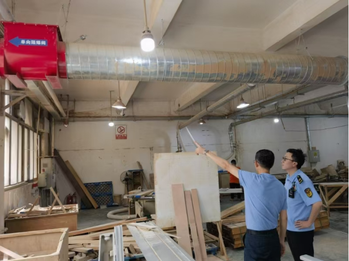 2024年3月21日,松江区应急管理局行政执法人员按执法计划对松江区某家具有限公司开展执法检查,查见该企业内1层、2层生产区域分属不同防火分区且均产生木粉尘,但该企业1层、2层共用同一套集中除尘系统且该套除尘系统互通互联。依据《工贸企业重大事故隐患判定标准》第十一条第二项的规定,上述行为属于重大事故隐患。执法人员现场责令该企业暂时停止使用相关设施设备,立即排除事故隐患。依据《中华人民共和国安全生产法》第一百零二条,2024年5月13日,上海市松江区应急管理局对该企业做出人民币2万元罚款的行政处罚。