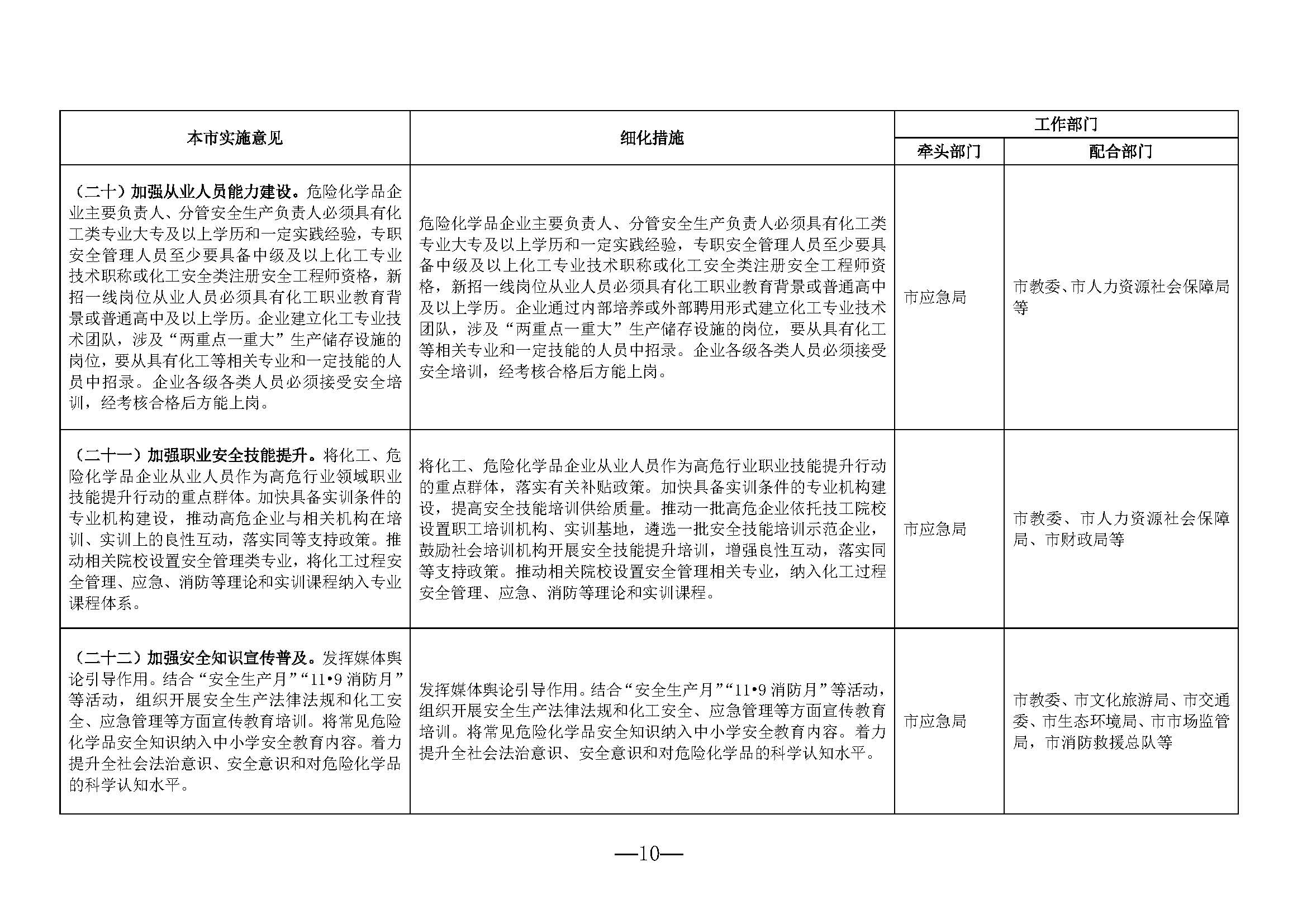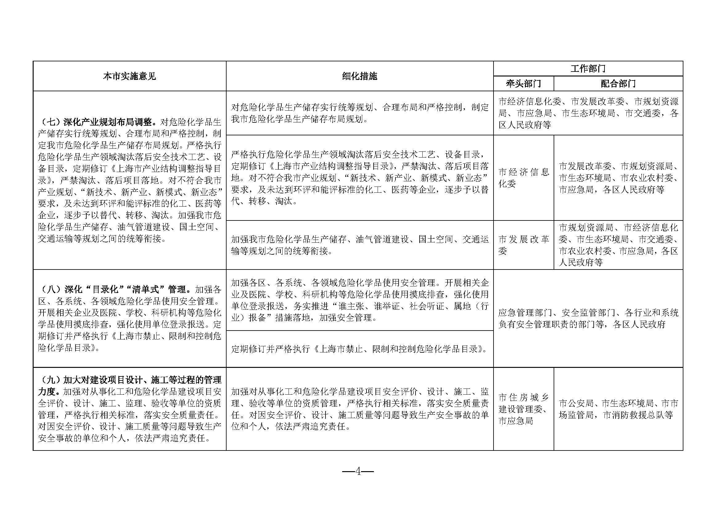 《分工表》一共28条实施意见,70条细化措施,涉及市应急局、市科委、市市场监管局、上海化学工业区管理委员会、市消防救援总队、市卫生健康委、市交通委、市应急局、市市场监管局等各部门各行业和系统负有安全管理职责的部门。