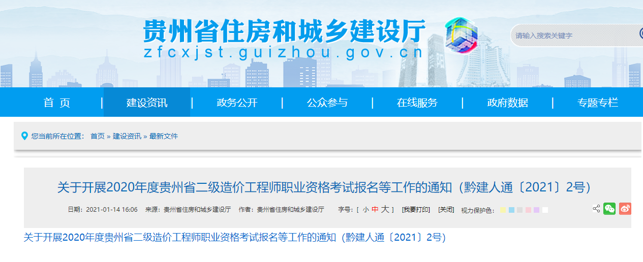 注意啦!贵州二级造价师考试开始报名啦!