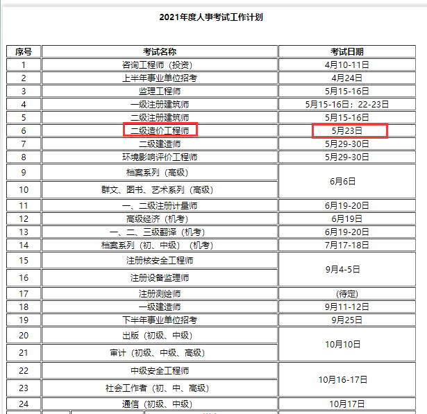 通知公布:浙江省2021年二级造价工程师考试日期为5月23日